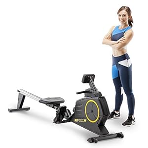 CIRCUIT FITNESS Deluxe Foldable Magnetic Rowing Machine with 8 Resistance Settings/Transport Wheels/LCD Monitor