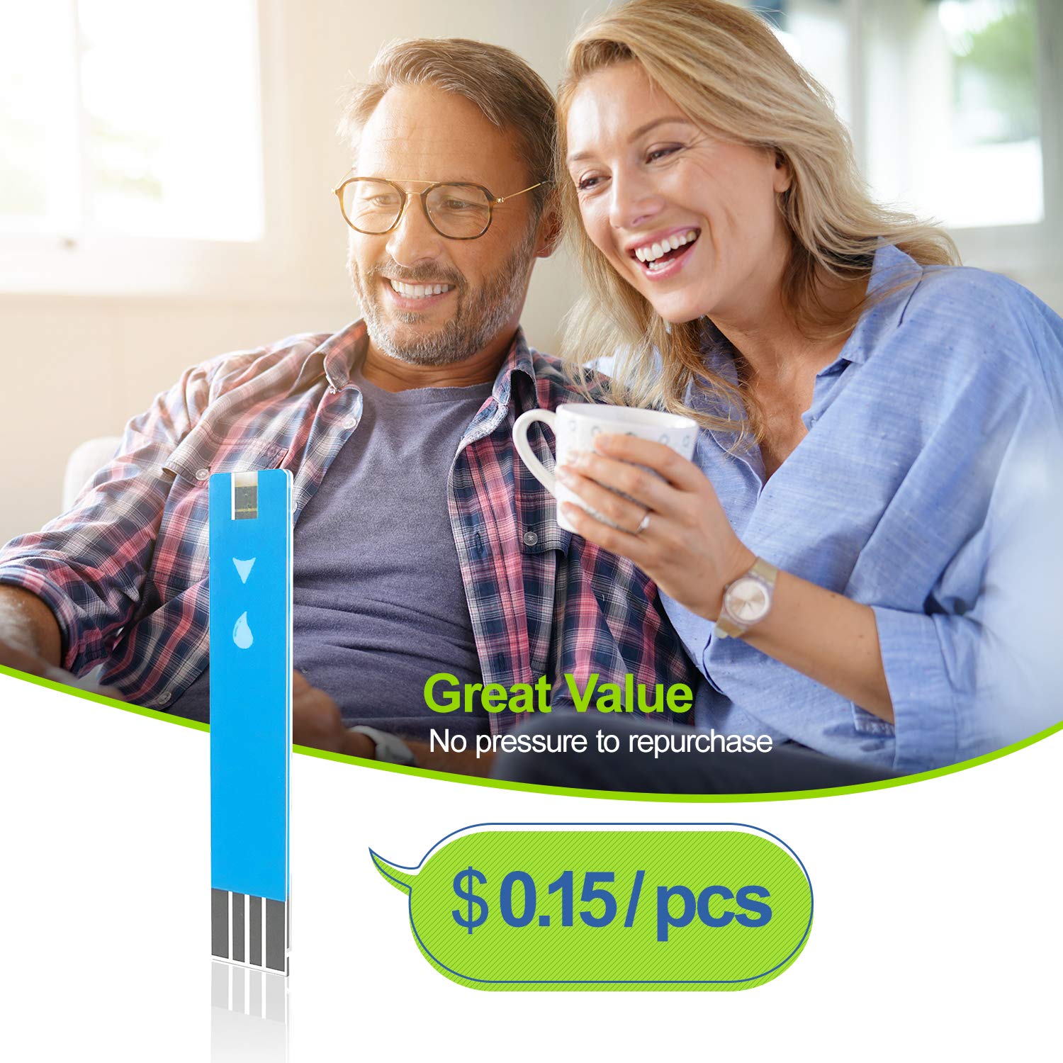 CUTTING-EDGE TEST STRIPS. We use state of the art test strips enzymes for blood glucose measurements. Our test strips are produced with unique Automatic Carbon Printing Technique to ensure that the quality of each batch of strips could be relevantly much more stable, precise and accurate. Additionally, PROMISED 0.15USD/pcs would keep you no pressure to repurchase.