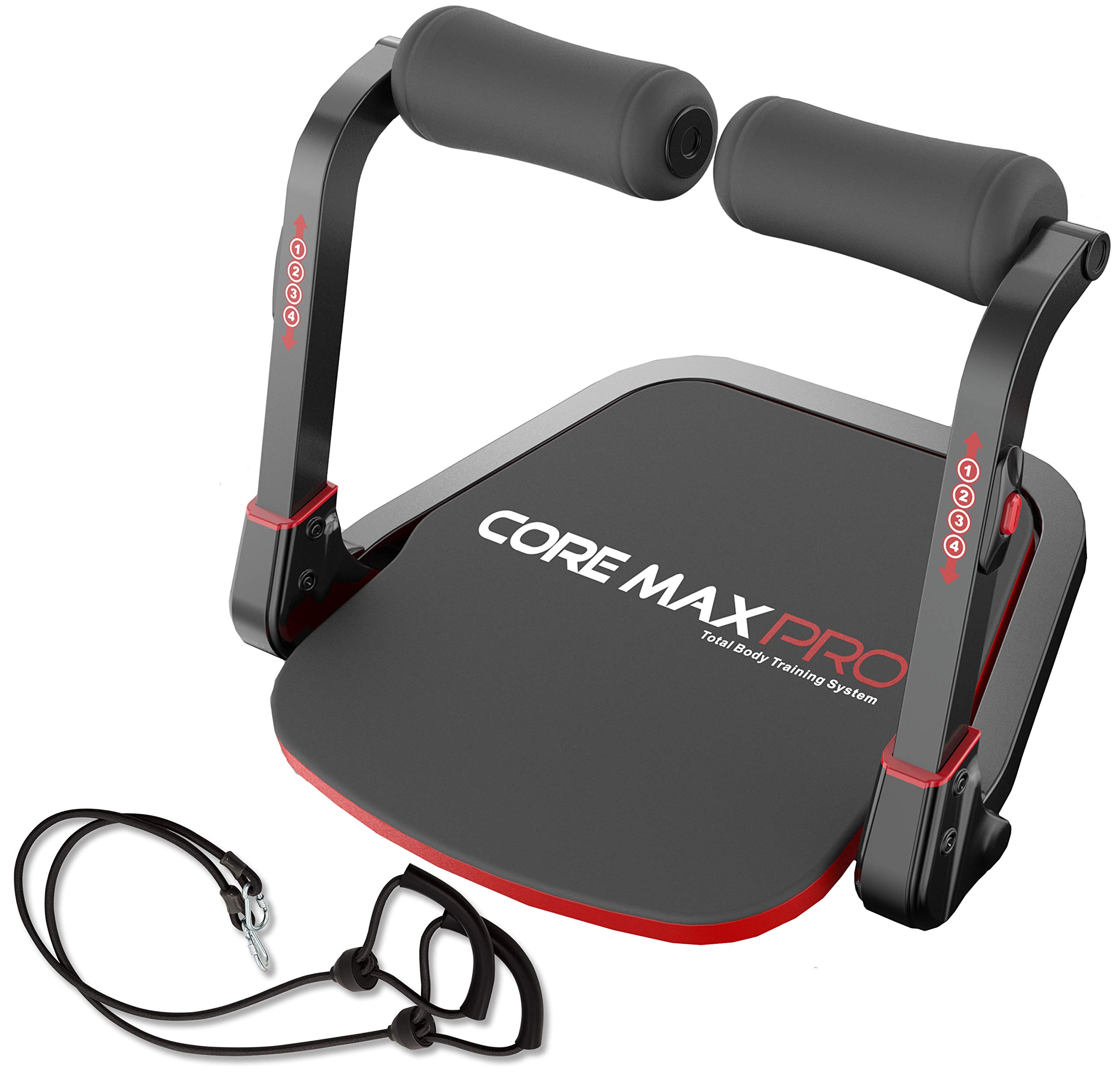 Core Max PRO with Resistance Bands Abs and Total Body Smart 8 min Workout & Cardio Machine, Red/Black