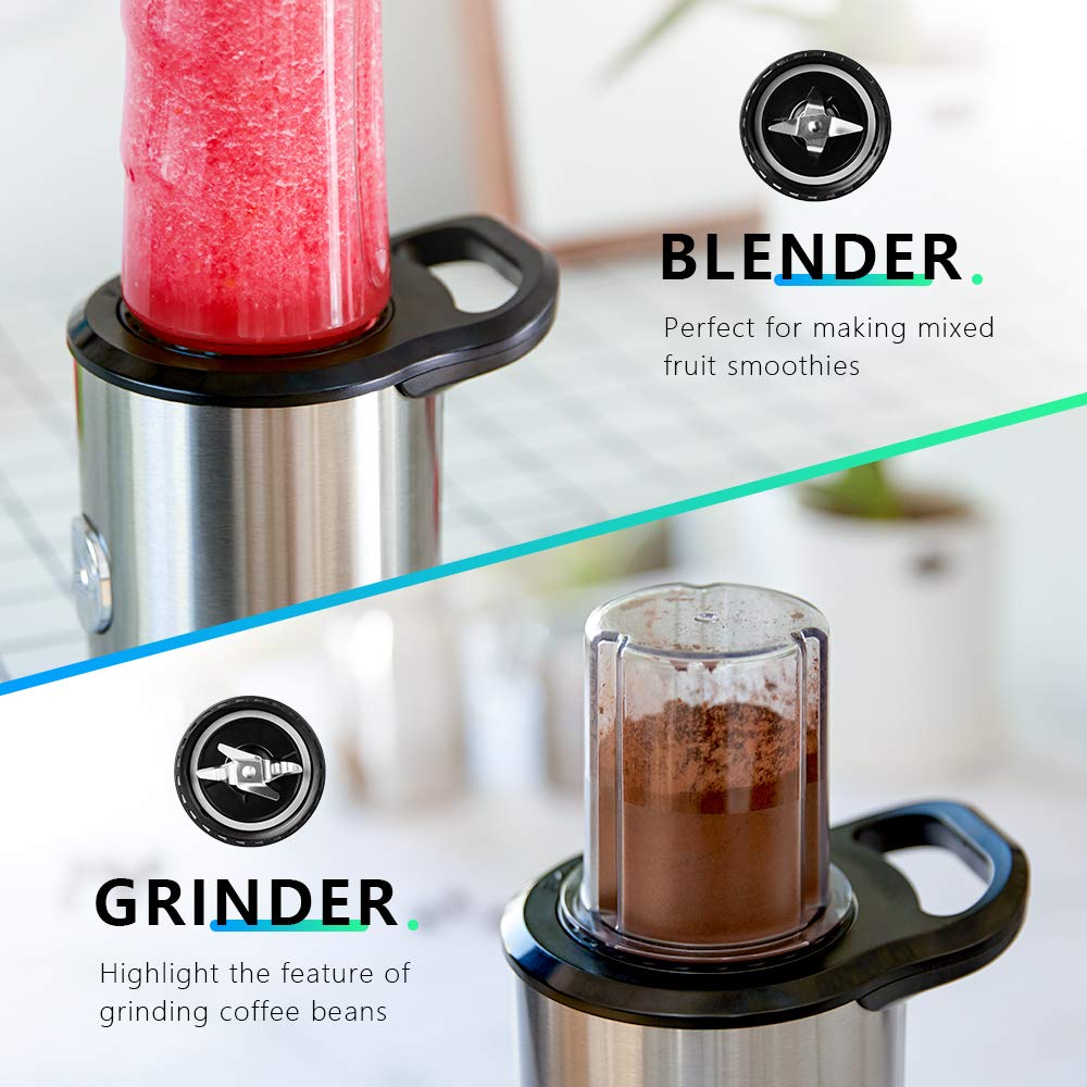 Robust: With stainless steel blades and 300W pure copper motor, it is able to crush and mix all ingredients in a few seconds, creating creamy consistency or milled powder with ease.