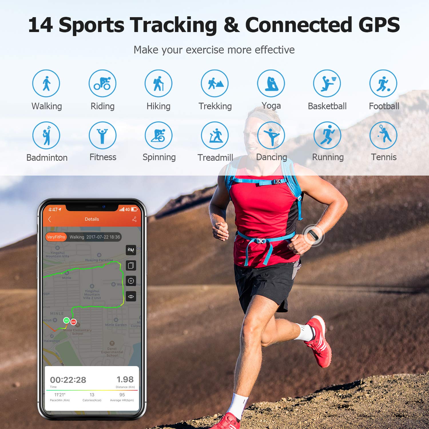 Daily Activity and 14 Sports Tracking: Letsfit fitness tracker tracks your daily stats: steps, distance, active minutes and calories burned; tracks workouts with 14 exercise modes and use your smartphone GPS to see real-time pace and distance