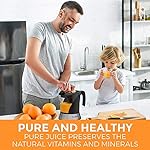 🍋 LARGE CAPACITY AND REMOVABLE JUICE CONTAINER: Large 34oz (1L) transparent juice container with handle and measure markings makes juicing for recipes easy, its sleek and modern stainless-steel design and auto-reversing juicing cones provide maximum juice extraction. The fixed filter helps you control the amount of pulp allowing you to decide the perfect mix. You can dispose of the pulp or use it in other healthy recipes.