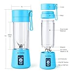 Specification: Blender Material: Food Grade PC & 304 Stainless Steel, 6 Blades in 3D(BPA free) Motor: DC 3.6V, Up to 22000 rpm Power supply: Lithium battery USB 5V Battery volume: 2000mAh Cup Weight: 0.5 lb/227g Cup height size: 3x3x6″ Blender Dimensions: 3x3x9″ Capacity: 17oz/380ml Blender Weight: 1.3 lb/590g Package included: 1 x Zjj-Home Portable Blender 1 x USB Charging cable 1 x User Manual How to use: 1. Prepare the fruit you like, cut them into 1.5cm. 2. According to your personal taste, add water or milk to 30%-60%, put the fruit in and make them lower than 80% of the bottle. 3. Press the button. The blender will takes 20s to 60s for tasty juice base on the softness of fruit. Gently shake the bottle at 10 sec to make it more delicious. 4.Enjoy the fresh and healthy drink. NOTES: 1.The personal blender pedestal could not be soaked into water even as washing it. 2.Charge your blender before your first use. The lights turns red even as charging and blue once full charged. 3.Align arrow marking to the switch on base. Another way The blender is under safety protection status and unable to turn on. 4.The blender will damage the motor if the use of without water or long the use of without juice material. Add water at least cover the blades. Solid food shall occupy 80% of cup and 20% empty space for food moving. 5.After put in solid food, please check if it stops blades from moving. It is better to put cup upside down that solid food is away from blades. After motor moving, turn the cup back. Shake the cup when the use of to recuperate effect.6.You’ll blend ice. Make sure you blend with sufficient liquid inside first, and that your cubes don’t seem to be too large. If they get stuck, add liquid, shake your Blend a bit, or turn it upside down.