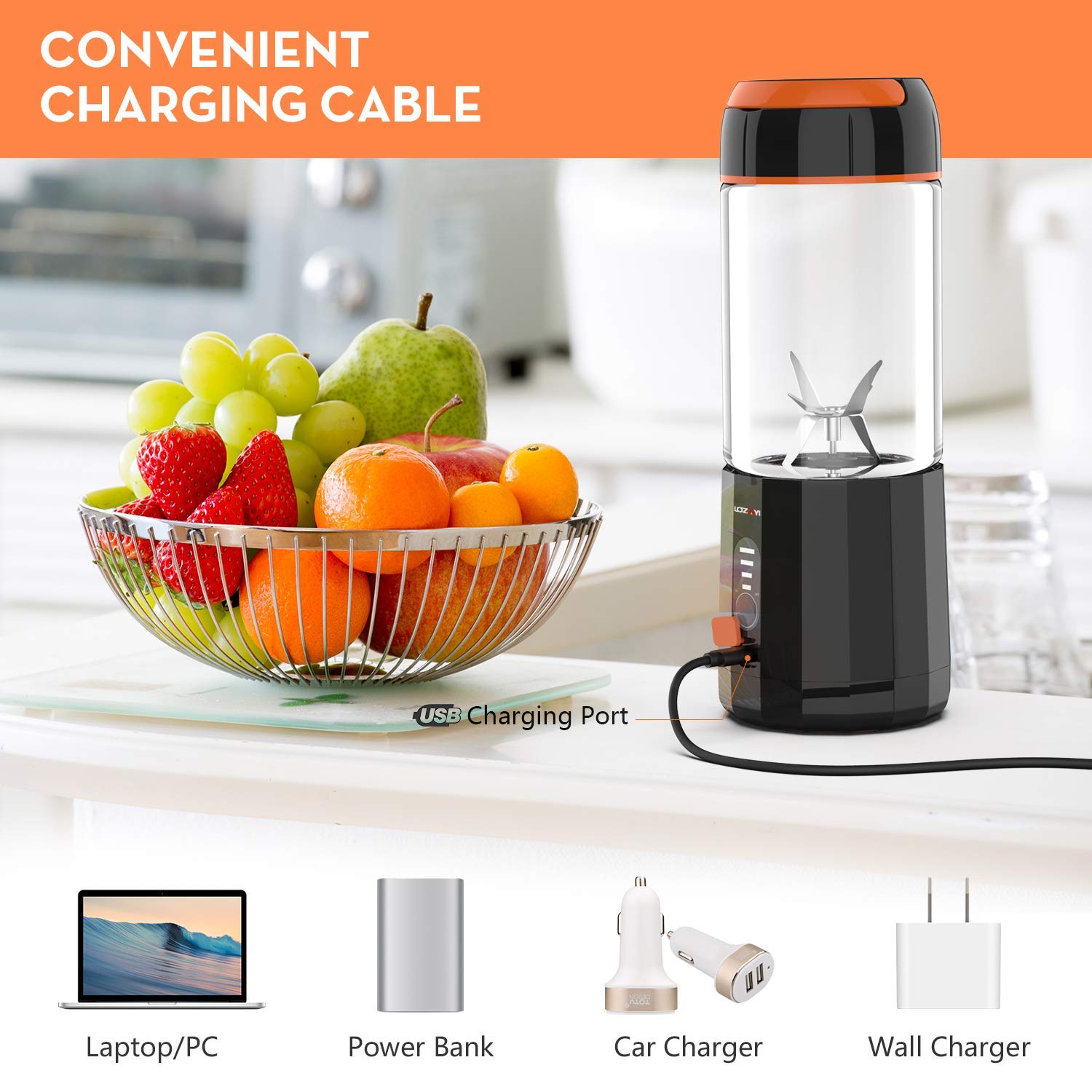 🍹4000mAh Rechargeable Batteries: This juicer has a 4000mAh battery and can be used 24 times when fully charged. With USB cable, this single serve blender can be easily charged by power bank, laptop, computer or other usb devices, keep your travel on the go.(※It is recommended to charge the product for 3 hours before using it for the first time. If it is not used for a long time, it needs to be fully charged before storage.)