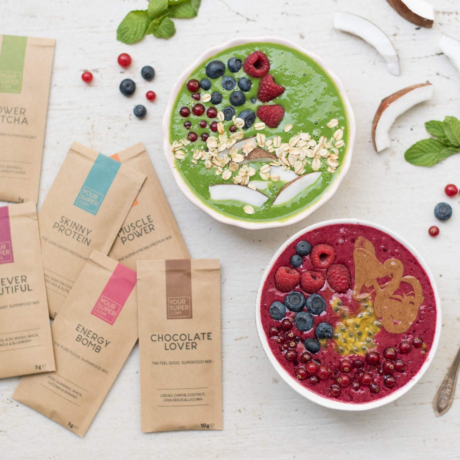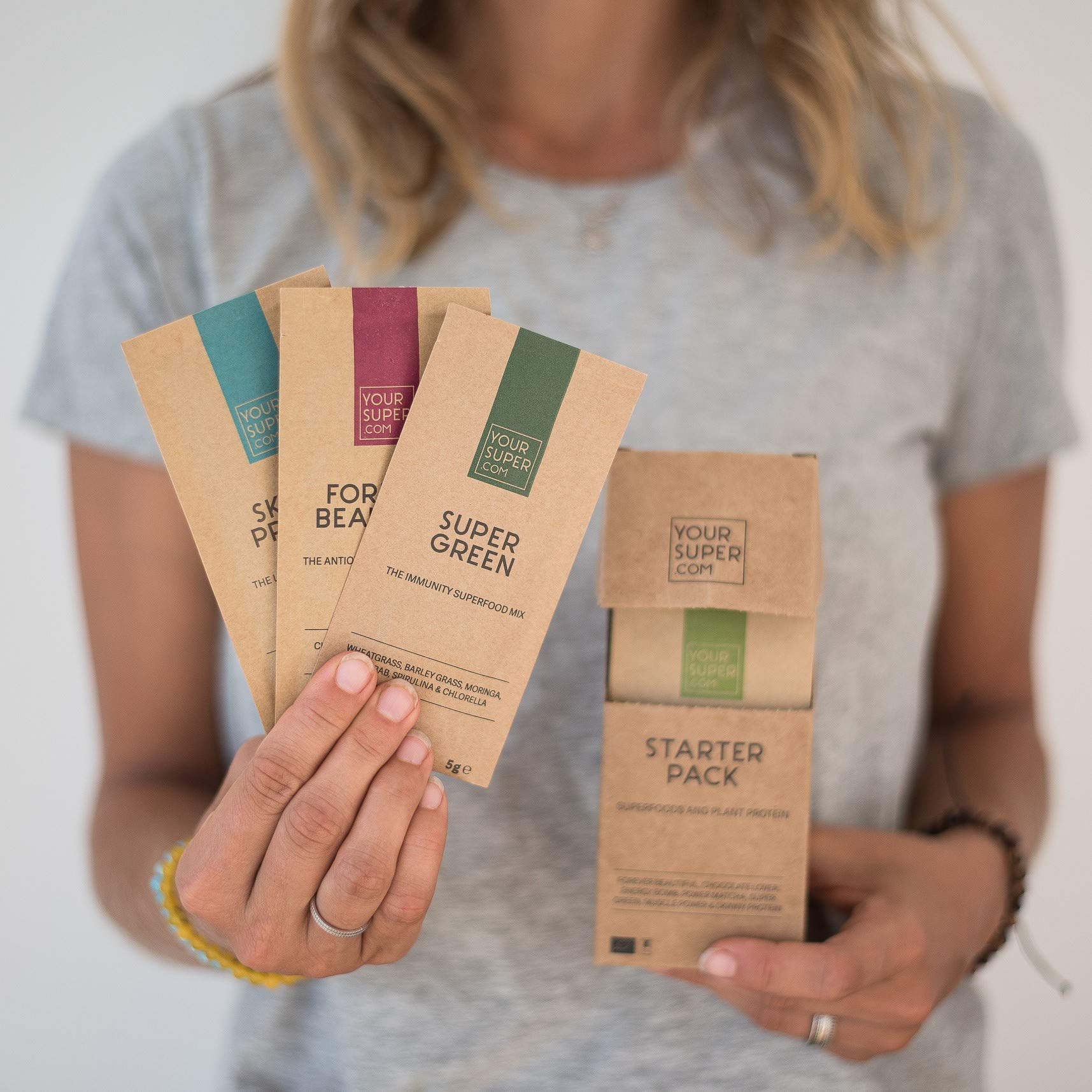 SUPERFOOD STARTER PACK: Your Super Starter Pack showcases 7 of our most popular organic superfood mixes – Skinny Protein, Super Green, Muscle Power, Energy Bomb, Eternally Beautiful, Power Matcha, and Chocolate Lover.
